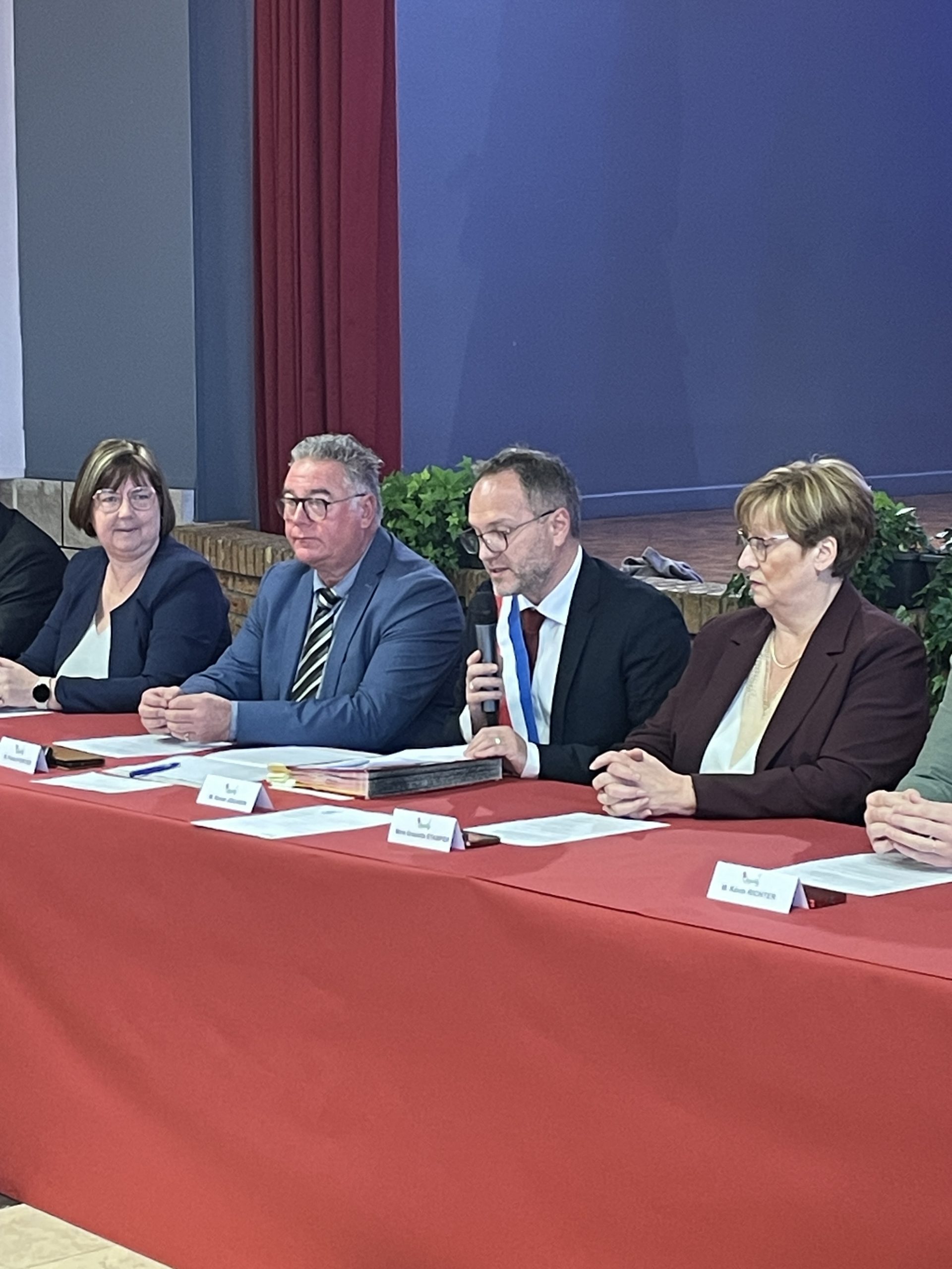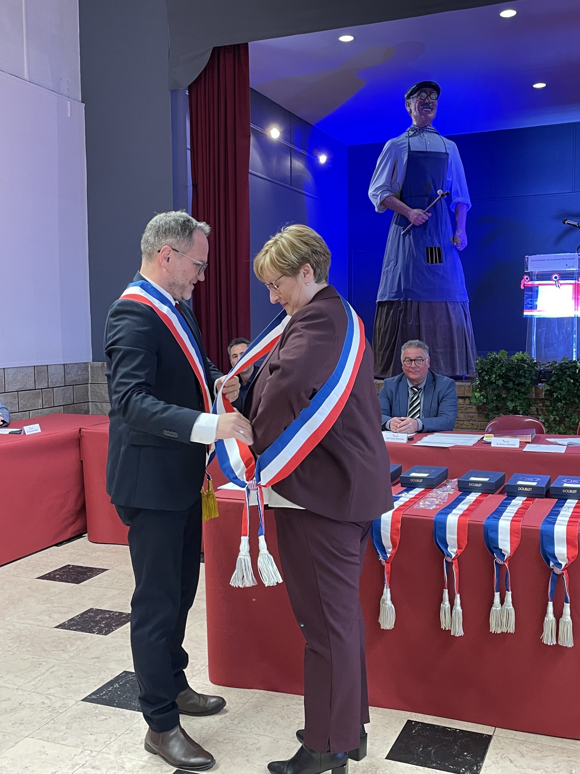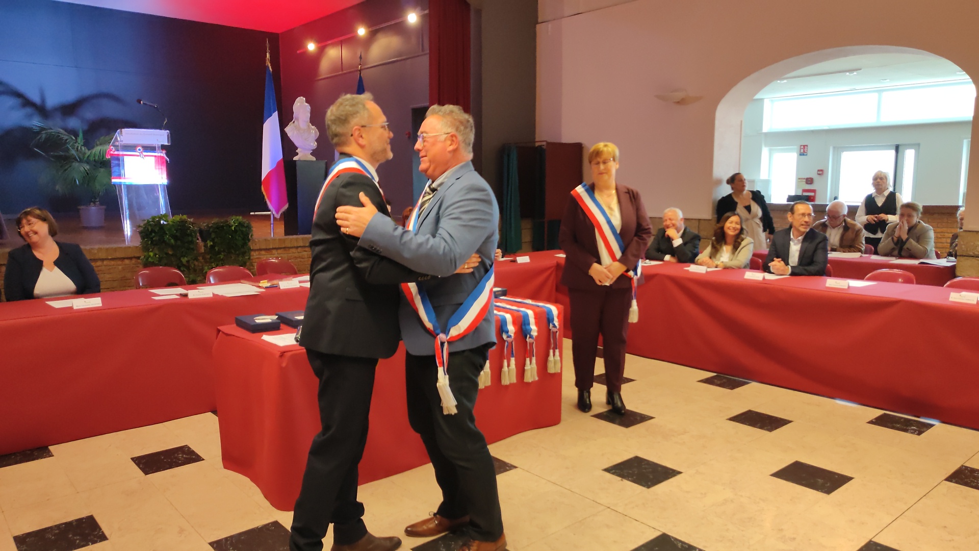 Beaucoup de joie et d’émotion au moment de la distribution des écharpes et des insignes aux nouveaux élus de ce conseil largement renouvelé, ainsi que l’a rappelé Xavier Jouanin dans le discours qui a suivi :