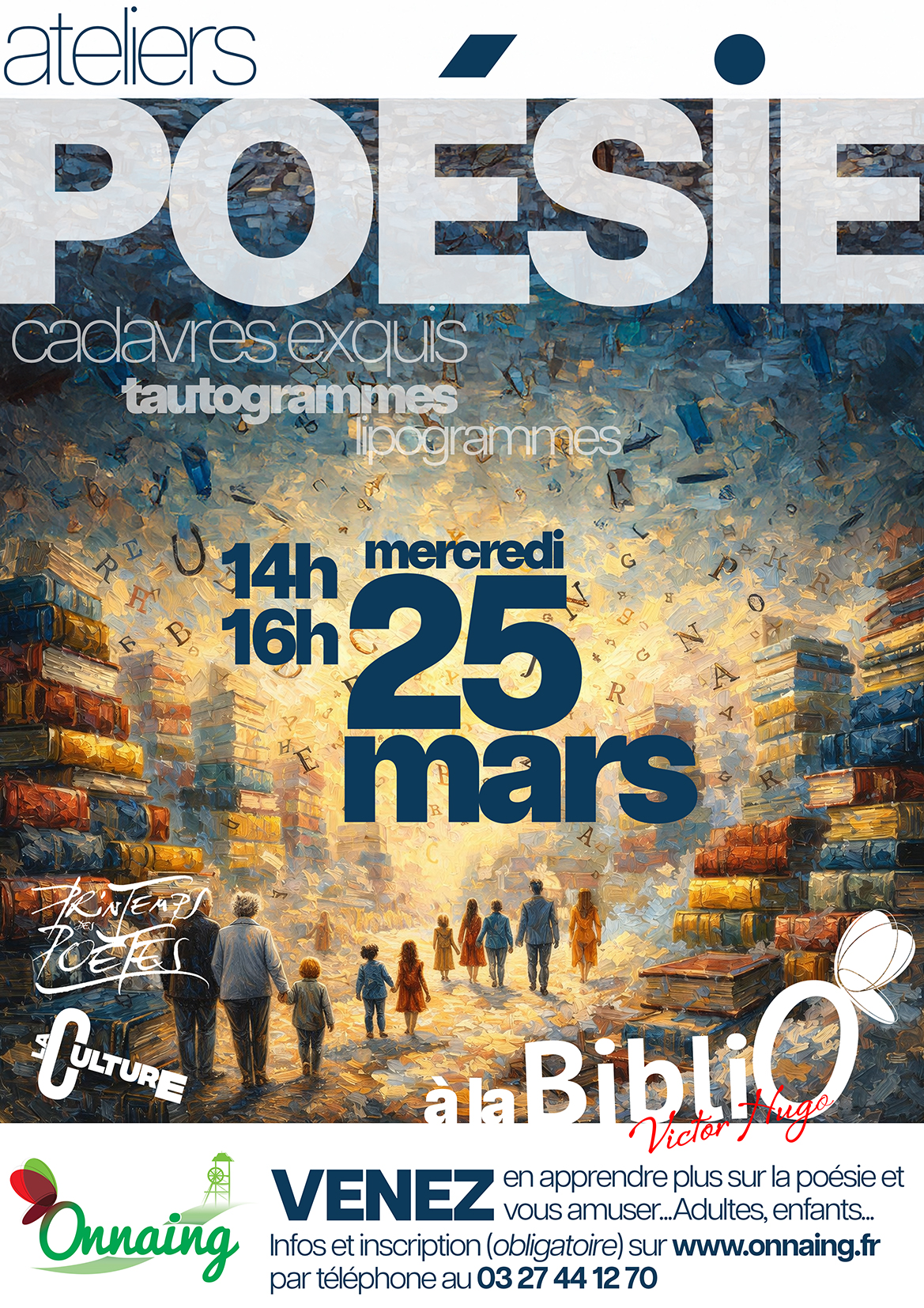 Dans le cadre de la programmation culturelle et à l’occasion du Printemps des Poètes, la BibliO’ organise des ateliers poésie le mercredi 25 mars :